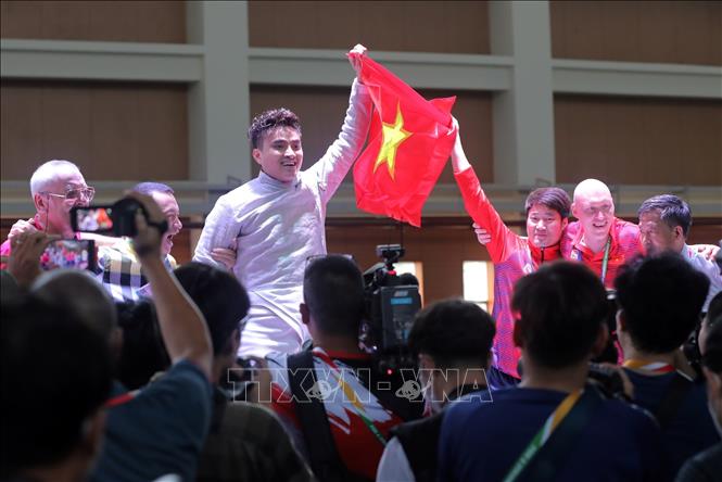 Vietnamese fencer Vu Thanh An won gold at the ongoing 31st Southeast Asian Games (SEA Games 31) after defeating his Thai opponent in the final of the men's sabre individual event on May 13. After going cruising through the group and knockout stages, An defeated Ruangrit Haekerd 15-11 to qualify for the final. His opponent Srinualnad Voragun was overwhelmed with a score of 15-7, with An successfully defending his SEA Games title. VNA Photo