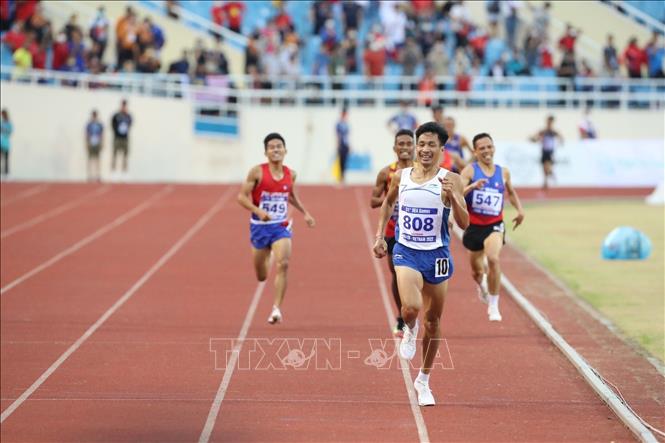 The second day of athletics competition at the 31st SEA Games took place on May 15. Vietnam won 5 more gold medals in the following events: men's long jump (Athlete Nguyen Tien Trong), women's high jump (Athlete Pham Thi Diem), women's 400m run (athlete Nguyen Thi Huyen), men's 5000m run (Nguyen Van Lai) and the 3000m steeplechase (Nguyen Thi Oanh). Most notably, Vietnamese runner Nguyen Thi Oanh has established herself as one of the stars of SEA Games 31 by making a gold hat-trick after two days of competition. The winner of the women’s 3,000m hurdles on May 15, she clocked 9 min 46 sec to break her own record of 10 min and 0.02 sec set at SEA Games 30 in the Philippines. VNA Photo