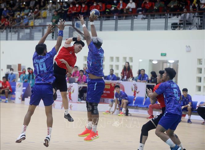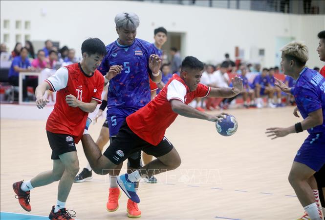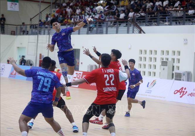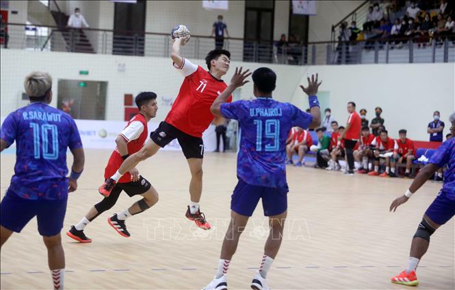 Thailand (in blue) tied 29-all with Singapore (in red) in the men’s indoor handball within SEA Games 31 in a match taking place at the Bac Ninh University of Physical Education and Sports in the northern province of Bac Ninh on May 16. VNA Photo: Thế Duyệt