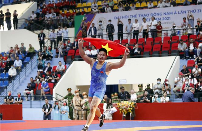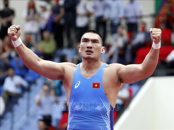 Vietnam's wrestling team secured six gold medals on the first day of competition at the 31st Southeast Asian Games (SEA Games 31) at Gia Lam Gymnasium in Hanoi on May 17. Vietnamese wrestlers won the gold medals in the men’s 60kg, 67kg, 77kg, 87kg, 97kg and 130kg. VNA Photo: Trần Việt