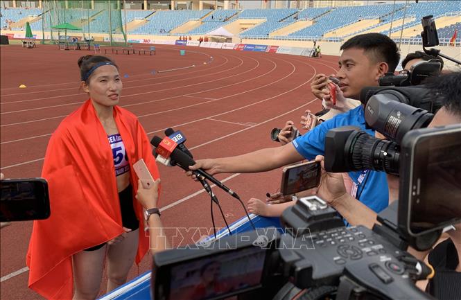 Athletics competitions continued on May 17 at My Dinh National Stadium in Hanoi. Vietnam athletics continued the winning streak when sprinter Quach Thi Lan set a record of 56:32 in the women's 400m hurdles at SEA Games 31. In the women's heptathlon, Athlete Nguyen Linh Na earned another gold with a score of 5,415 points, breaking the national record (old record was 5,350 points). Runner Nguyen Van Lai was the focus of attention on the fourth day of athletics competitions at SEA Games 31 after winning the men's 10,000m - his second gold medal at this Games. He was the first to cross the finishing line in a time of 32:17:34. With Lai’s triumph, the Vietnamese athletics team won 16 gold medals at SEA Games 31, almost reaching the target of 15-17 gold medals set before the Games. VNA Photo