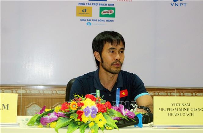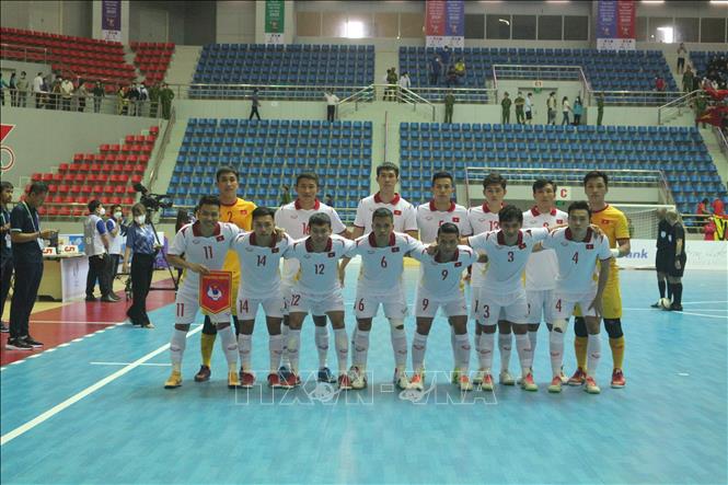 The Vietnamese men’s Futsal team trounced Myanmar 4-0 in a match at the ongoing SEA Games 31 on May 18. VNA Photo Vietnamese Coach Pham Minh Giang speaks at a press conference after the match. VNA Photo Myanmar Coach Charoenwong speaks at a press conference after the match. VNA Photo Vietnamese men’s Futsal team before the match. VNA Photo Photos SEA Games 31: Vietnam trounces Myanmar 4-0 in men’s Futsal Thứ Tư, 18/05/2022 21:54 The Vietnamese men’s Futsal team trounced Myanmar 4-0 in a match at the ongoing SEA Games 31 on May 18. VNA Photo