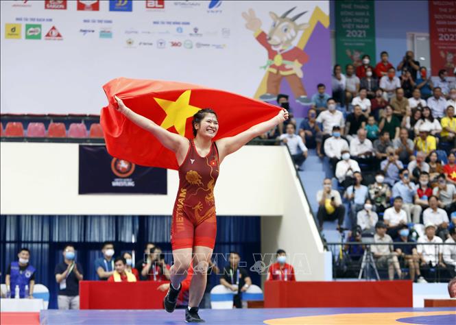 Female Vietnamese wrestlers fetched six more gold medals on the second day of competition at the Southeast Asian Games (SEA Games 31) on May 18. After two days of competition, wrestlers contributed up to 12 gold medals to the Vietnamese sport delegation at SEA Games 31. VNA Photo