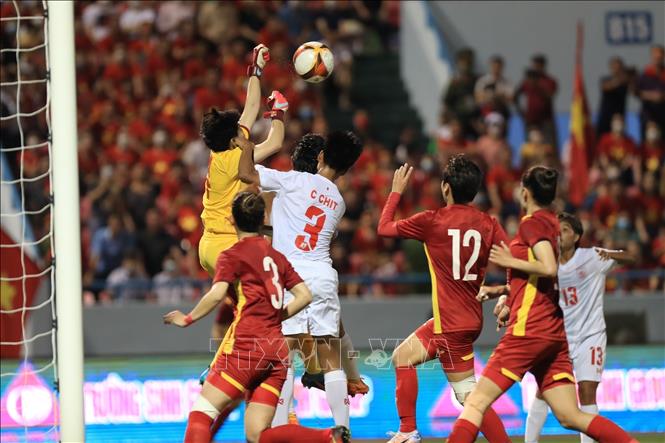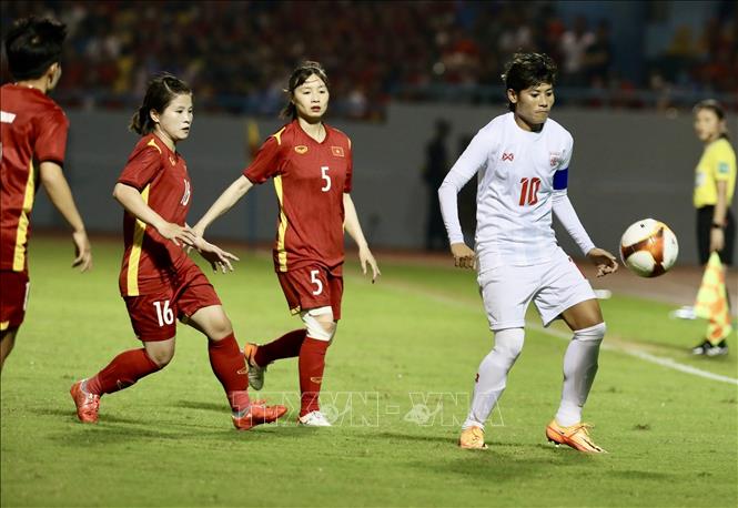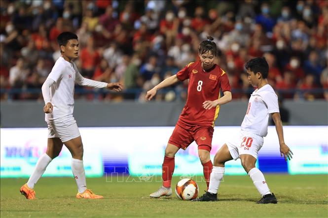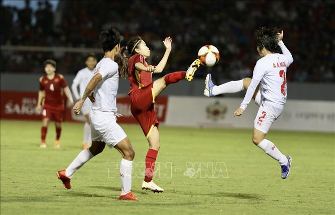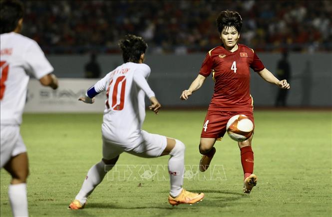 Vietnam (in red) beat Myanmar (in white) 1-0 in the SEA Games 31 women’s football semi-final match at the Cam Pha stadium, the northern province of Quang Ninh, on May 18. The only goal was scored by team captain Huynh Nhu (9) in the 28th minute. Vietnam will meet Thailand in the final match on May 21. VNA Photo: Anh Tuấn