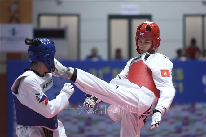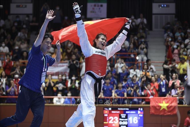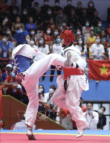 The final matches for Taekwondo sparring events took place at the Tay Ho District Gymnasium (Hanoi) on May 18. Athlete competed in five events including: Men’s sparring 63kg and 74kg weight classes, and women’s sparring 53kg, 57kg and 73kg weight classes. Vietnam team earned an extra two more gold medals with athlete Nguyen Thi Huong and athlete Tran Thi Anh Tuyet in women’s 73kg and 53kg weight classes. VNA Photo