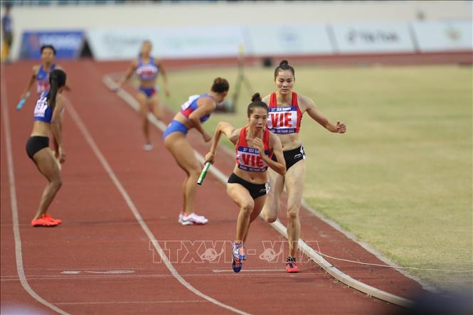 Athletes entered the fifth day of athletics competitions on May 18. Vietnam team won 3 more gold medals in the following events: The women's javelin throw of athlete Lo Thi Hoang (Thai ethnicity), the women's 10,000m run by Pham Thi Hong Le and the women's 4x400m relay, bringing the total number of gold medals in Vietnamese athletics to 19 golds, exceeding the original target of 15-17 gold medals. VNA Photo