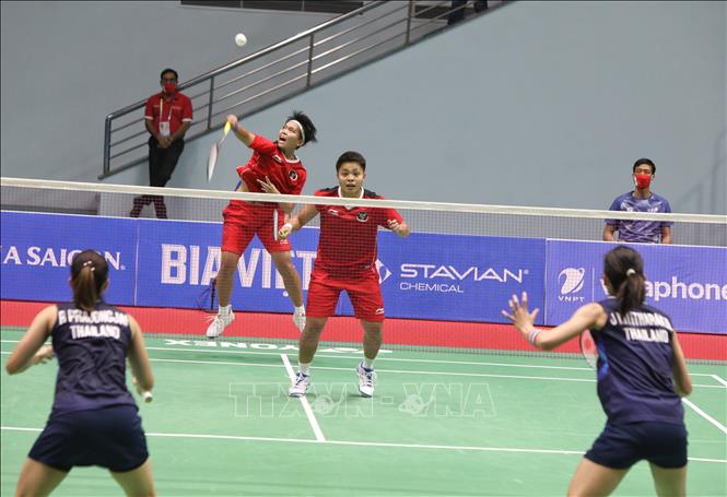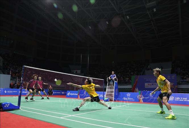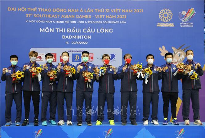 The Thai male badminton team celebrate their victory at the award ceremony. VNA Photo: Danh Lam Thai (yellow) and Indonesian players in competition of the men’s team event. VNA Photo: Danh Lam Thai (blue) and Indonesian players in competition of the women’s team event. VNA Photo: Danh Lam The Thai female badminton team celebrate their victory at the award ceremony. VNA Photo: Danh Lam Photos SEA Games 31: Thailand bags gold medals in badminton Thứ Tư, 18/05/2022 23:52 Thailand bagged gold medals in the women and men’s team events at the ongoing SEA Games 31 on May 18. VNA Photo: Danh Lam