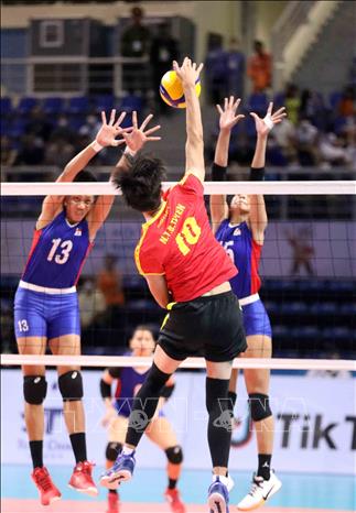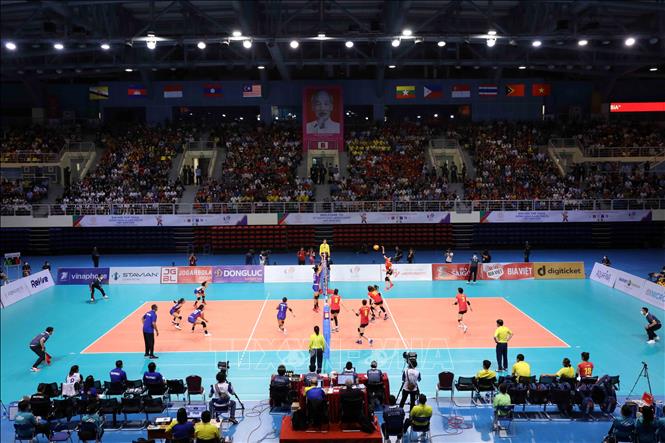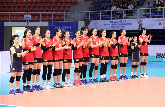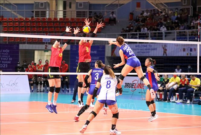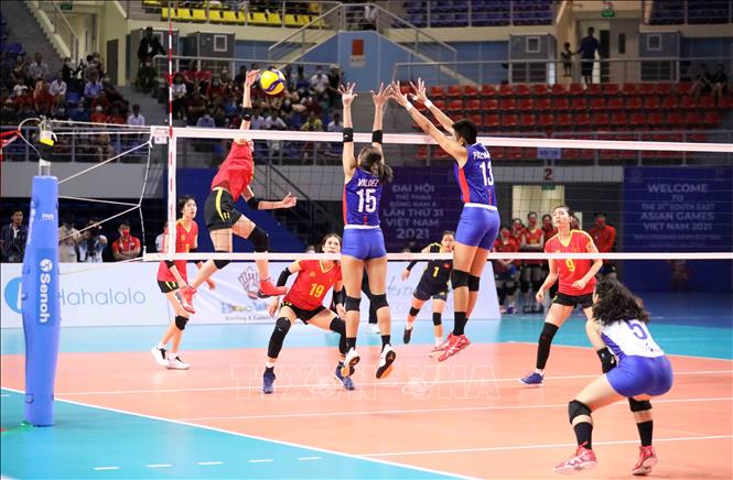 Vietnam (in red) defeated the Phiippines (in blue) 3-0 in a women’s indoor volleyball match within the SEA Games 31 which took place at the Dai Yen Gymnasium in Ha Long city, the northern province of Quang Ninh, on May 19. VNA Photo: Anh Tuấn