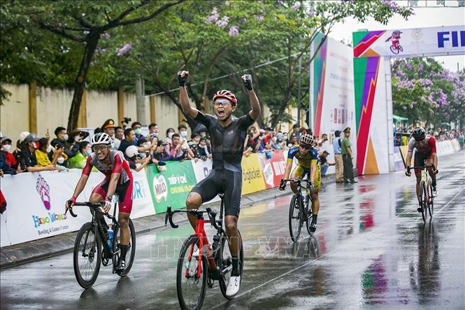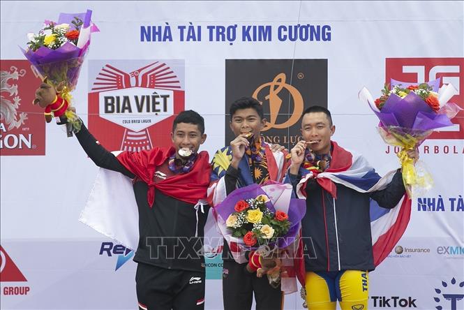 Cyclist Mohd Zariff Muhammad Nur Aiman of Malaysia won a gold medal in the men’s individual mass start road cycling at the ongoing SEA Games 31 on May 21. The silver medal of the event went to Indonesian cyclist Cahyadi Aiman and the bronze, to Liphongyu Navuti from Thailand. VNA Photo: Trọng Đạt