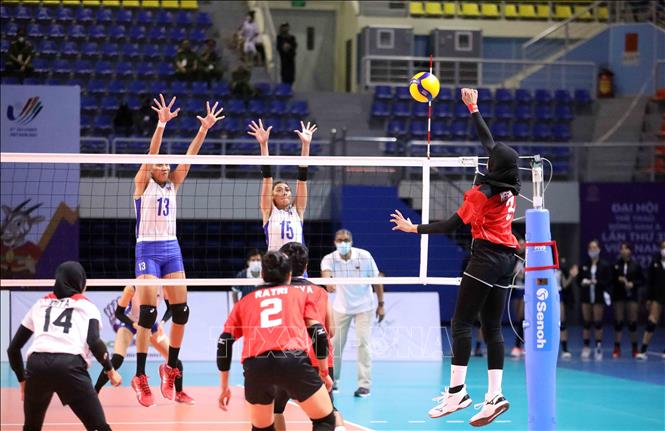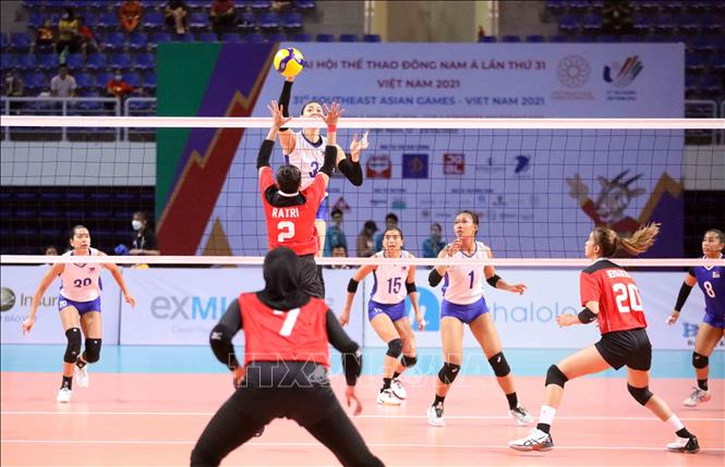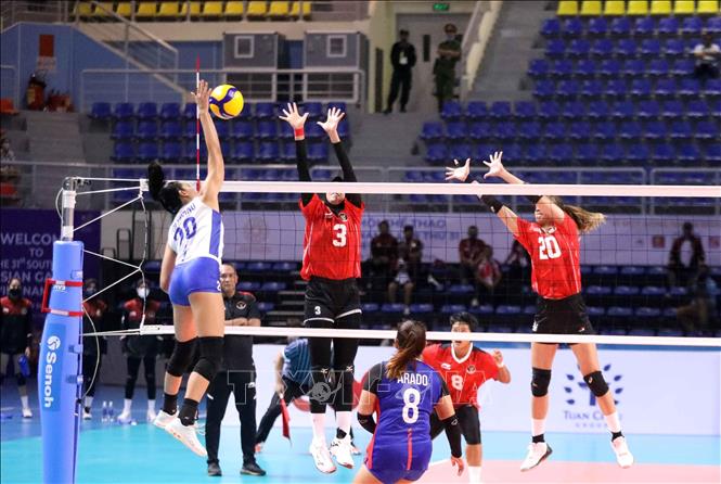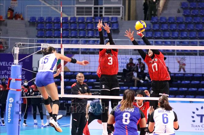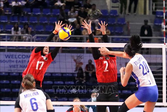 Indonesia (in red) defeated the Philippines (in white) 3-1 at the Dai Yen Gymnasium in Ha Long city, the northern province of Quang Ninh, on May 21, to win the bronze in the SEA Games 31 women’s indoor volleyball. VNA Photo: Anh Tuấn