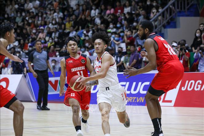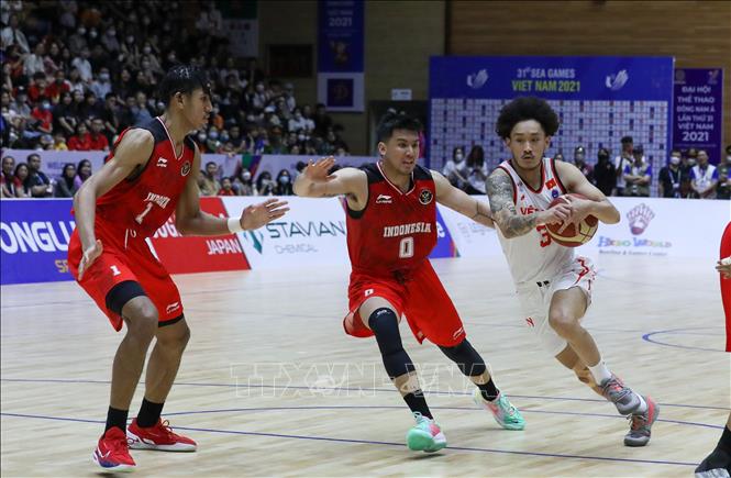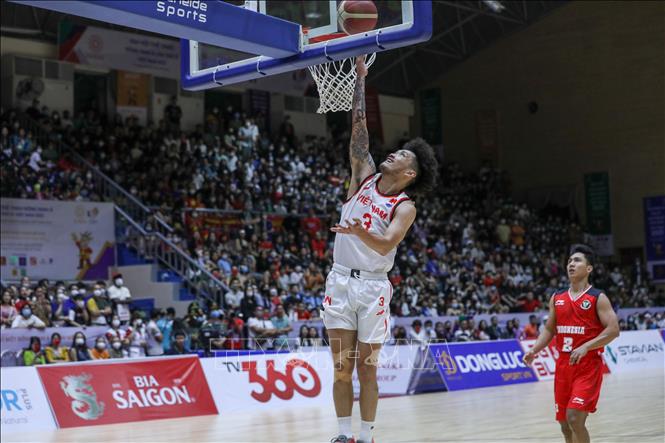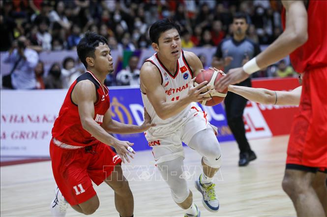 The Vietnamese team (white) lost 94-67 to the Indonesian rivals (red) in a match of the men’s 5x5 basketball at the ongoing SEA Games 31 on May 21. VNA Photo: Khánh Hoà