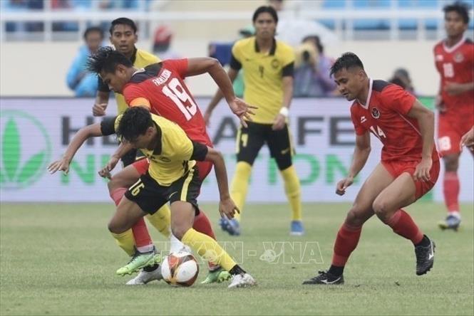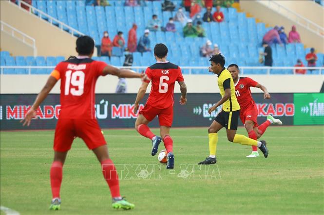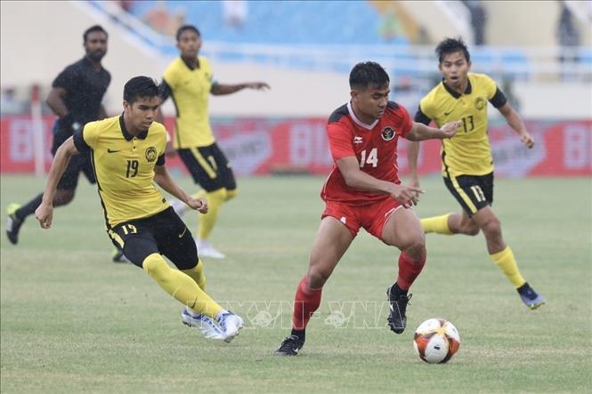 After 90 minutes ending at 1-1, U23 Indonesia (in red) won 4-3 over U23 Malaysia (in yellow) in penalty shoot-outs in the third-place match of the SEA Games 31 men’s football at the My Dinh stadium in Hanoi on May 22 and took the bronze. VNA Photo