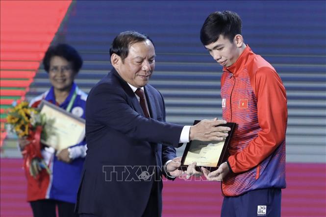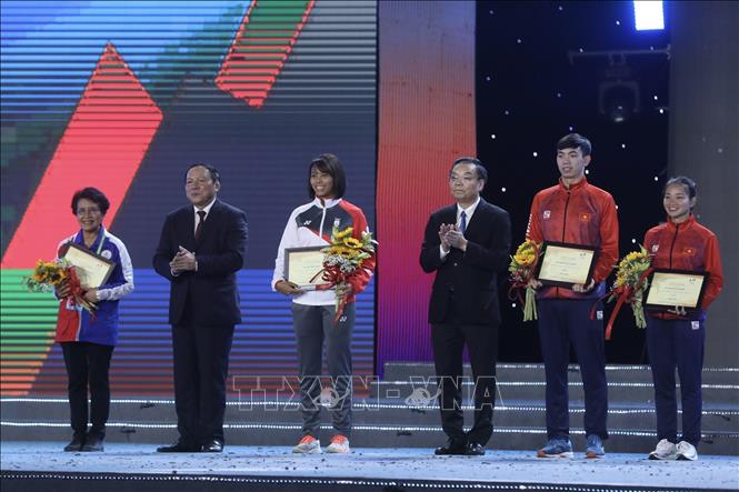 Four athletes who had excellent performance during the 31st Southeast Asian Games (SEA Games 31) hosted by Vietnam from May 12-23 were honoured as "Best Athletes of SEA Games 31" at the closing ceremony at the My Dinh Indoor Athletics Arena in Hanoi on May 23. The fours included male swimmer Nguyen Huy Hoang (5 golds) and female runner Nguyen Thi Oanh (3 golds) from Vietnam, female swimmer Jing Wen Quah (6 golds) from Singapore, and male track and field athlete Joshua Robert Atkinson (4 golds) from Thailand. VNA Photo