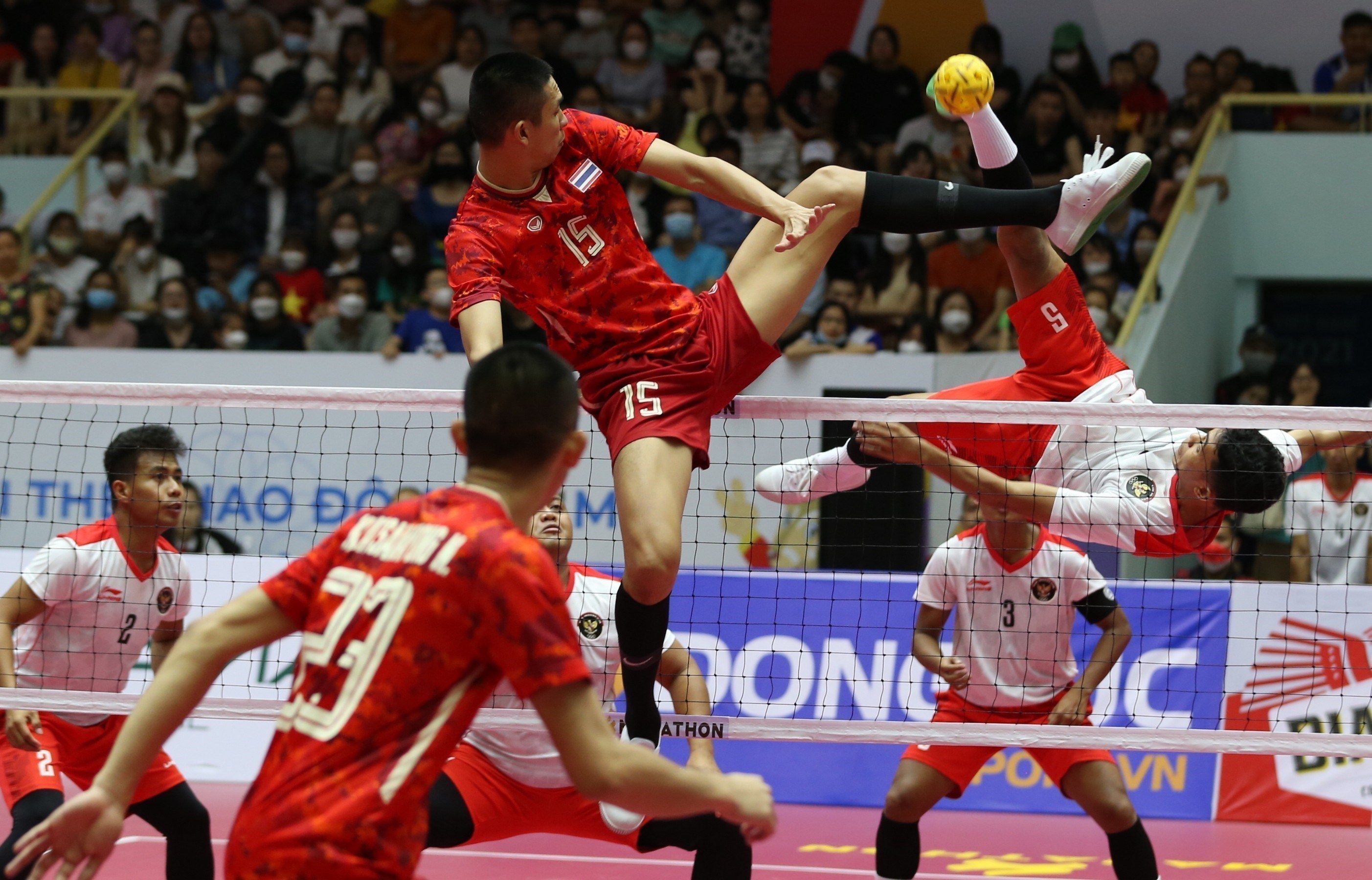 Sepak Takraw Athletics Vovinam Triathlon and Duathlon Jujitsu Kurash Kickboxing Finswimming Esports Bowling Bodybuilding Wushu Wrestling Weightlifting Volleyball Tennis Taekwondo Table Tennis Shooting Boat racing Pétanque Pencak Silat Muay Karate Judo Handball Gymnastics Golf Fencing Dancesport Cycling Chess Boxing Billiard Snooker Basketball Badminton Archery Diving Swimming Football Thailand grabs golds in men and women’s sepak takraw Indonesia, Myanmar wins gold medal in Sepak Takraw Sepak Takraw competions continue