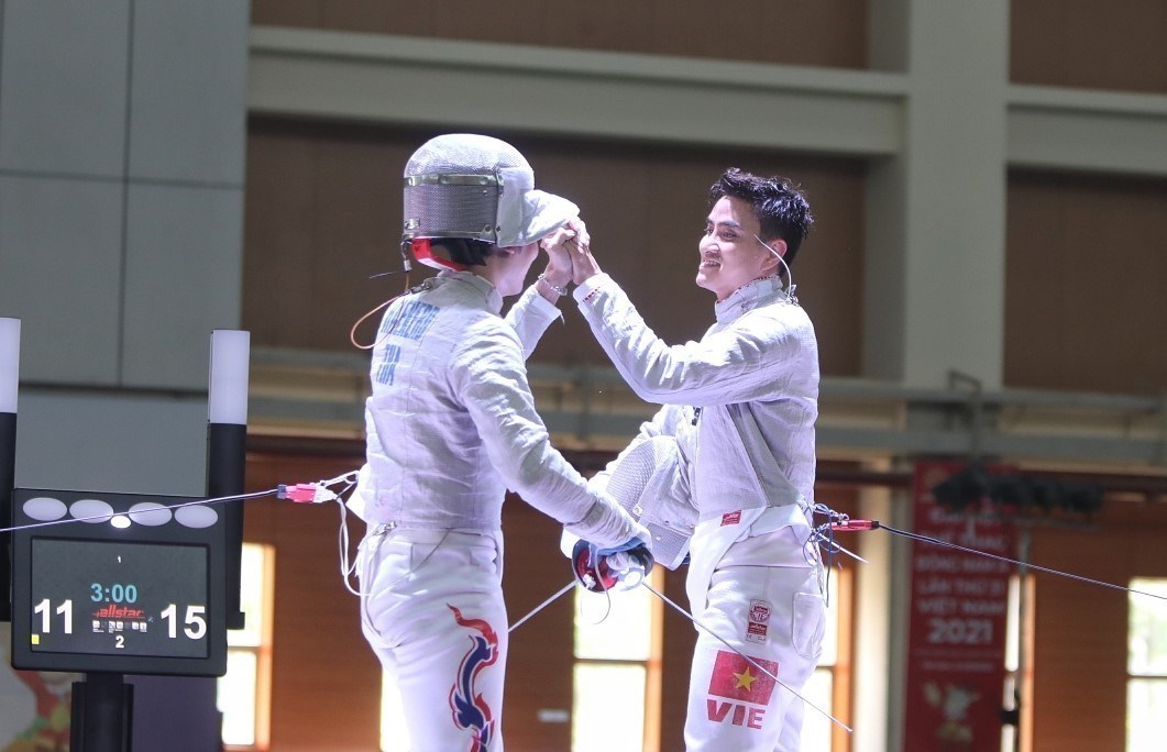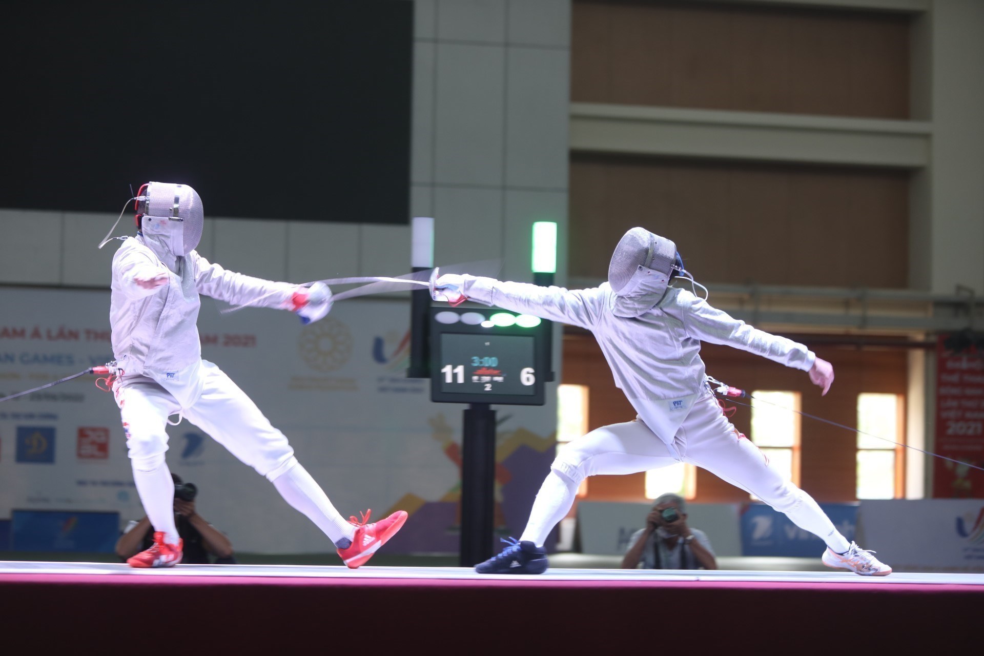 Fencing competitions of the 31st Southeast Asian Games (SEA Games) began on March 13, with Vietnam sending its aces to vie for medals. On the day, fencers Nguyen Phuong Kim and Vu Thi Hong will compete in the women’s epee event, while Vu Thanh An and Nguyen Xuan Loi will begin their SEA Games tournament in the men’s sabre. Fencing events with 12 sets of medals are taking place at the Hanoi Indoor Games Gymnasium from May 13 to 18. VNA Photo: Danh Lam