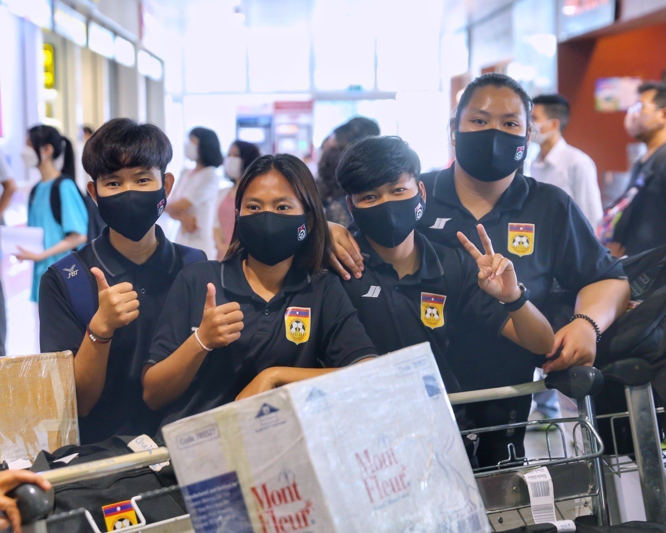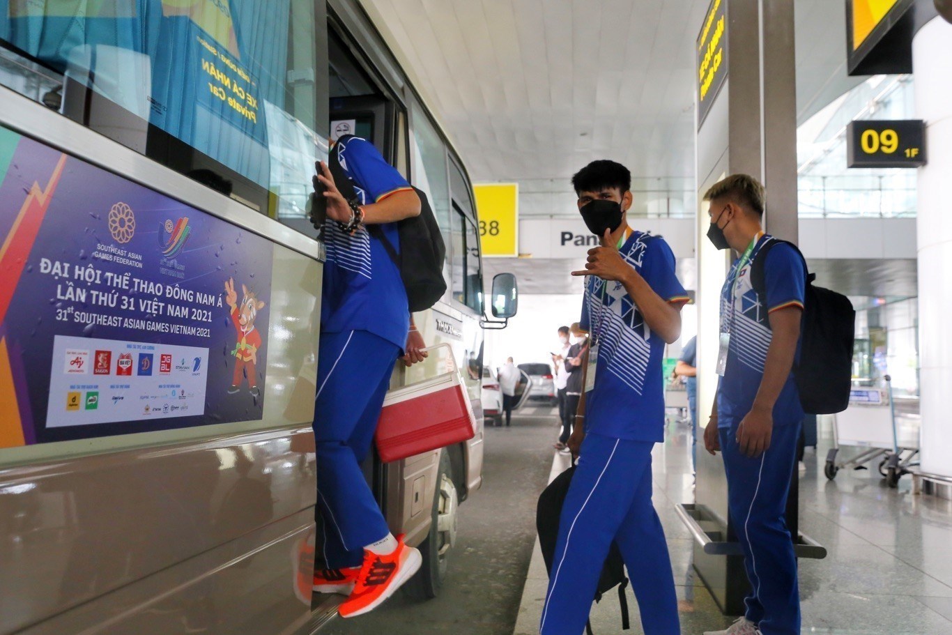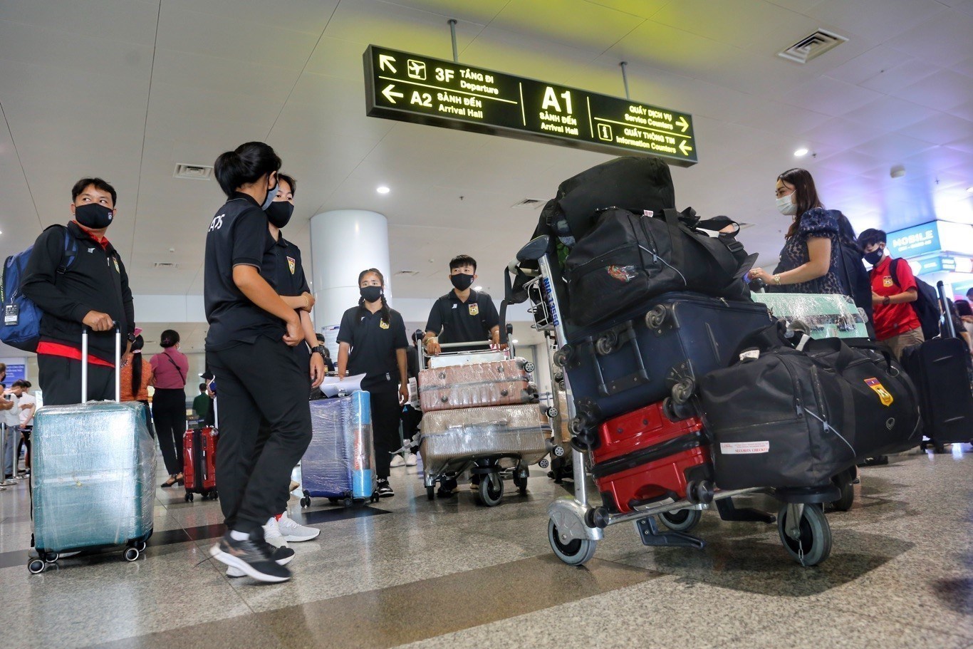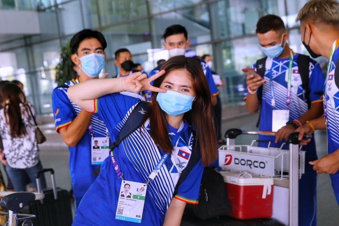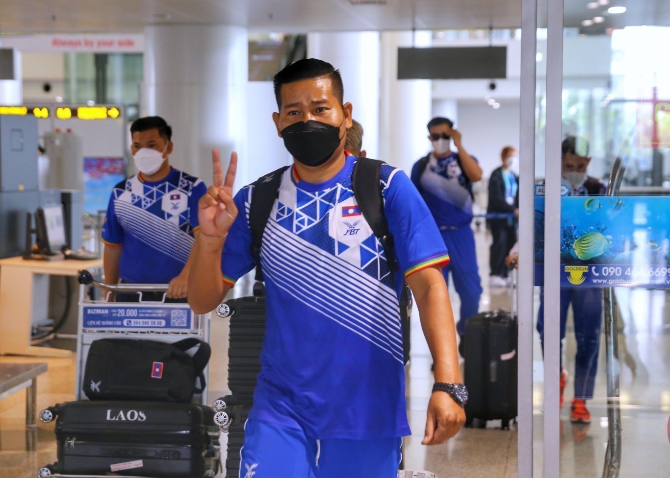 Lao Pencak Silat and women football teams arrived at Noi Bai International Airport on May 06, then the football team left for northern Bac Ninh province and the Pencak Silat team stayed in Hanoi for SEA Games 31 competitions. VNA Photo: Tuấn Đức