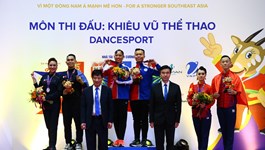 Dancesport Athletics Vovinam Triathlon and Duathlon Jujitsu Kurash Kickboxing Finswimming Esports Bowling Bodybuilding Wushu Wrestling Weightlifting Volleyball Tennis Taekwondo Table Tennis Shooting Sepak Takraw Boat racing Pétanque Pencak Silat Muay Karate Judo Handball Gymnastics Golf Fencing Cycling Chess Boxing Billiard Snooker Basketball Badminton Archery Diving Swimming Football Vietnam gain five bronzes in dancesport Monday, May 16, 2022 23:39 SEA Games 31: Vietnam gain five bronzes in dancesport Monday, May 16, 2022 21:32 SEA Games 31: dancesport ‘mine gold’ for Vietnam Monday, May 16, 2022 16:18 SEA Games 31: Blood, sweat and tears fuel young Vietnamese athlete’s dreams Wednesday, May 11, 2022 17:42 SEA Games 31: Singapore’s dancesport star eager to return to Hanoi Wednesday, May 11, 2022 14:04 Vietnamese dancesport team targets three gold medals at SEA Games 31 Thursday, May 05, 2022 16:00