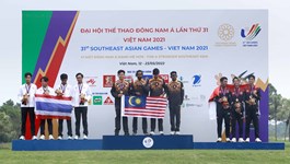 Golf Athletics Vovinam Triathlon and Duathlon Jujitsu Kurash Kickboxing Finswimming Esports Bowling Bodybuilding Wushu Wrestling Weightlifting Volleyball Tennis Taekwondo Table Tennis Shooting Sepak Takraw Boat racing Pétanque Pencak Silat Muay Karate Judo Handball Gymnastics Fencing Dancesport Cycling Chess Boxing Billiard Snooker Basketball Badminton Archery Diving Swimming Football SEA Games 31: Thailand, Malaysia top golf individual, team events Friday, May 20, 2022 10:19 SEA Games 31: Malaysian, Thai golfers win gold in singles events Monday, May 16, 2022 10:48 Thai golfer leads first round of men’s individual category at SEA Games 31 Friday, May 13, 2022 16:45 Golf tournament at SEA Games 31 begins Friday, May 13, 2022 15:50 SEA Games 31 golf competitions start Friday, May 13, 2022 09:17 Singaporean golfer misses SEA Games 31 due to COVID-19 Wednesday, May 11, 2022 15:39 Golfers gear up for SEA Games 31 Friday, April 29, 2022 10:00