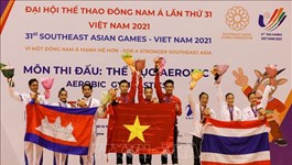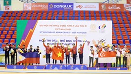 Gymnastics Athletics Vovinam Triathlon and Duathlon Jujitsu Kurash Kickboxing Finswimming Esports Bowling Bodybuilding Wushu Wrestling Weightlifting Volleyball Tennis Taekwondo Table Tennis Shooting Sepak Takraw Boat racing Pétanque Pencak Silat Muay Karate Judo Handball Golf Fencing Dancesport Cycling Chess Boxing Billiard Snooker Basketball Badminton Archery Diving Swimming Football SEA Games 31: Vietnamese aerobic gymnasts earn gold in first competition day Saturday, May 21, 2022 15:35 SEA Games 31: Malaysia grabs gold medal in rhythmic gymnastics Thursday, May 19, 2022 17:39 SEA Games 31 attracting eyeballs Wednesday, May 18, 2022 09:09 SEA Games 31: Malaysia concerned about medal standings Tuesday, May 17, 2022 17:19 SEA Games 31: Gymnast Dinh Phuong Thanh wins two gold medals Monday, May 16, 2022 21:12 SEA Games 31: Vietnam pocket five medals in gymnastics Monday, May 16, 2022 15:21 SEA Games 31: Singapore’s gymnasts put end to seven-year medal drought Saturday, May 14, 2022 16:05 SEA Games 31: Vietnam won first gold in gymnastics Friday, May 13, 2022 22:18 SEA Games 31: Vietnamese gymnasts win gold in artistic men’s team Friday, May 13, 2022 20:15 Gymnasts get ready for SEA Games 31 Tuesday, May 10, 2022 15:12 Vietnamese gymnasts intensify efforts for SEA Games 31 Wednesday, April 27, 2022 00:00 Quan Ngua Sports Complex ready for SEA Games 31 Monday, April 25, 2022 19:30