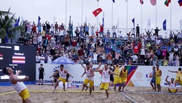Handball Athletics Vovinam Triathlon and Duathlon Jujitsu Kurash Kickboxing Finswimming Esports Bowling Bodybuilding Wushu Wrestling Weightlifting Volleyball Tennis Taekwondo Table Tennis Shooting Sepak Takraw Boat racing Pétanque Pencak Silat Muay Karate Judo Gymnastics Golf Fencing Dancesport Cycling Chess Boxing Billiard Snooker Basketball Badminton Archery Diving Swimming Football SEA Games 31: Gold medal for Vietnam in men’s indoor handball Friday, May 20, 2022 11:17 Vietnam defeats Thailand 40-30 in women’s indoor handball Tuesday, May 17, 2022 17:46 SEA Games 31: Philippines crush Malaysia at female’s indoor handball Friday, May 13, 2022 14:55 Vietnam secures gold medal in men’s beach handball tournament Wednesday, May 11, 2022 22:49 SEA Games 31: Philippines win 2-0 over Singapore in men's beach handball tournament Wednesday, May 11, 2022 21:33 Thailand wins 2-0 over Singapore in SEA Games 31 men's beach handball Tuesday, May 10, 2022 21:53 Vietnam wins gold medal in SEA Games 31 men’s beach handball Tuesday, May 10, 2022 21:20 Vietnam wins 2-0 over Singapore in SEA Games 31 men's beach handball Monday, May 09, 2022 19:03 Philippines wins 2-1 over Thailand in SEA Games 31 men's beach handball Monday, May 09, 2022 18:36 Vietnam win third beach handball match at SEA Games 31 Monday, May 09, 2022 08:42 Vietnam wins 2-1 over Thailand in SEA Games 31 men's beach handball Sunday, May 08, 2022 21:38 Philippines wins 2-0 over Singapore in SEA Games 31 men's beach handball Sunday, May 08, 2022 18:09 SEA Games 31: Vietnam clinch second win in men’s beach handball Sunday, May 08, 2022 15:33 SEA Games 31: Vietnam continues their win streak in beach handball Saturday, May 07, 2022 21:37 SEA Games 31 beach handball: Vietnam earns victory against Singapore Friday, May 06, 2022 22:18 SEA Games 31 beach handball: Philippines defeat Thailand 2-0 Friday, May 06, 2022 21:52