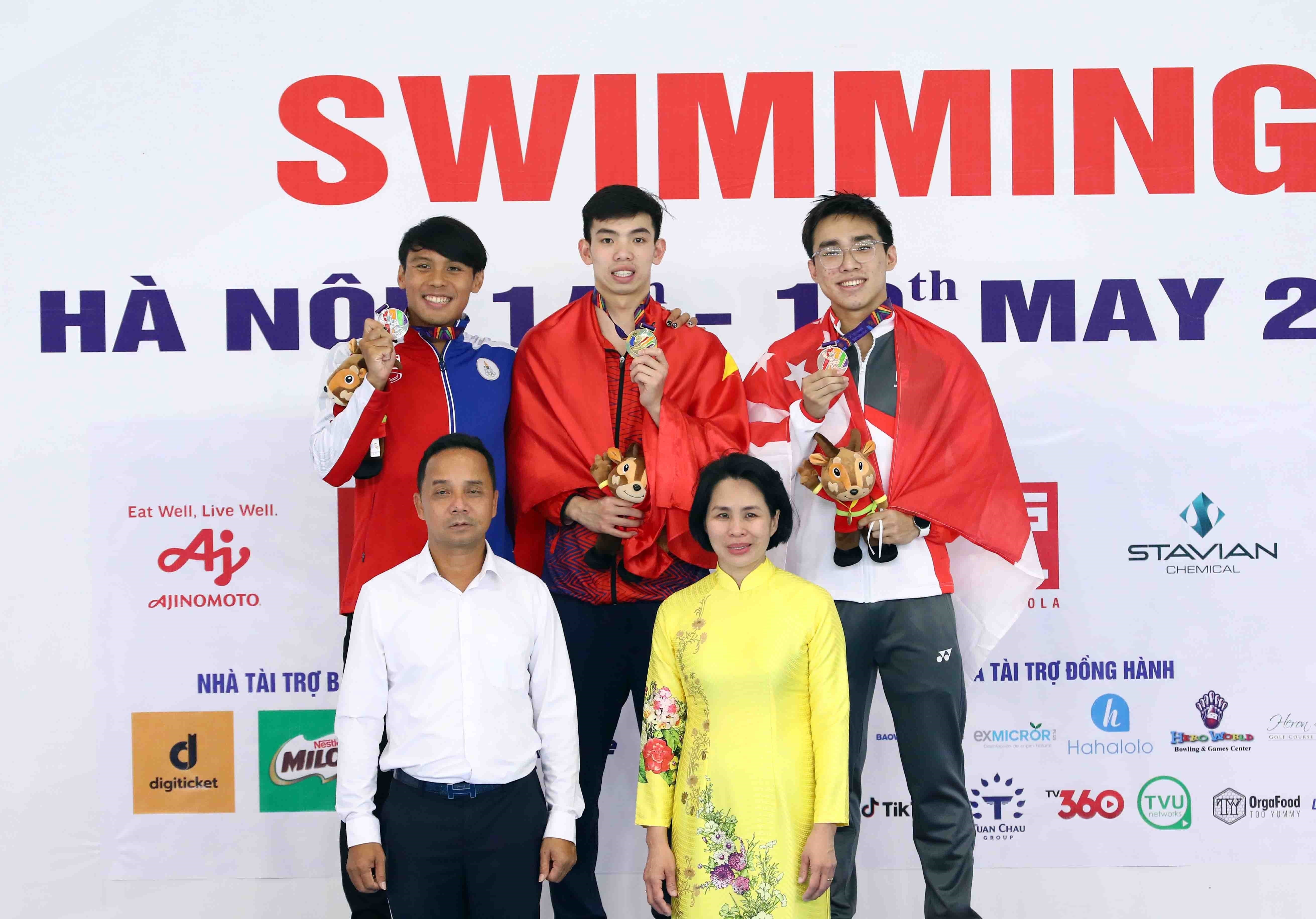 Beyond expectations, swimmer Nguyen Huy Hoang earned two more gold medals for Vietnam on May 19 – also the last competition day of swimming at the 31st Southeast Asian Games (SEA Games 31). In the men’s 800m freestyle, Vietnam’s No.1 swimmer finished first with a time of 7 minutes and 57.65 seconds. Meanwhile, his teammate Nguyen Huu Kim Son secured the silver medal with 8 minutes and 4.23 seconds. Thirty minutes later, Hoang surprised all when coming first in the men’s 200m butterfly which is not his forte. At this Games, Hoang personally pocketed four gold medals and contributed to the victory of the Vietnamese team in the men’s 4x100m relay. The Vietnamese swimming team won a total of 11 gold, 11 silver and three bronze medals, ranking second in the medal table. The Singaporean team ranks first in this sport, with 21 golds, 11 silvers and 12 bronzes. VNA Photo: Phạm Kiên