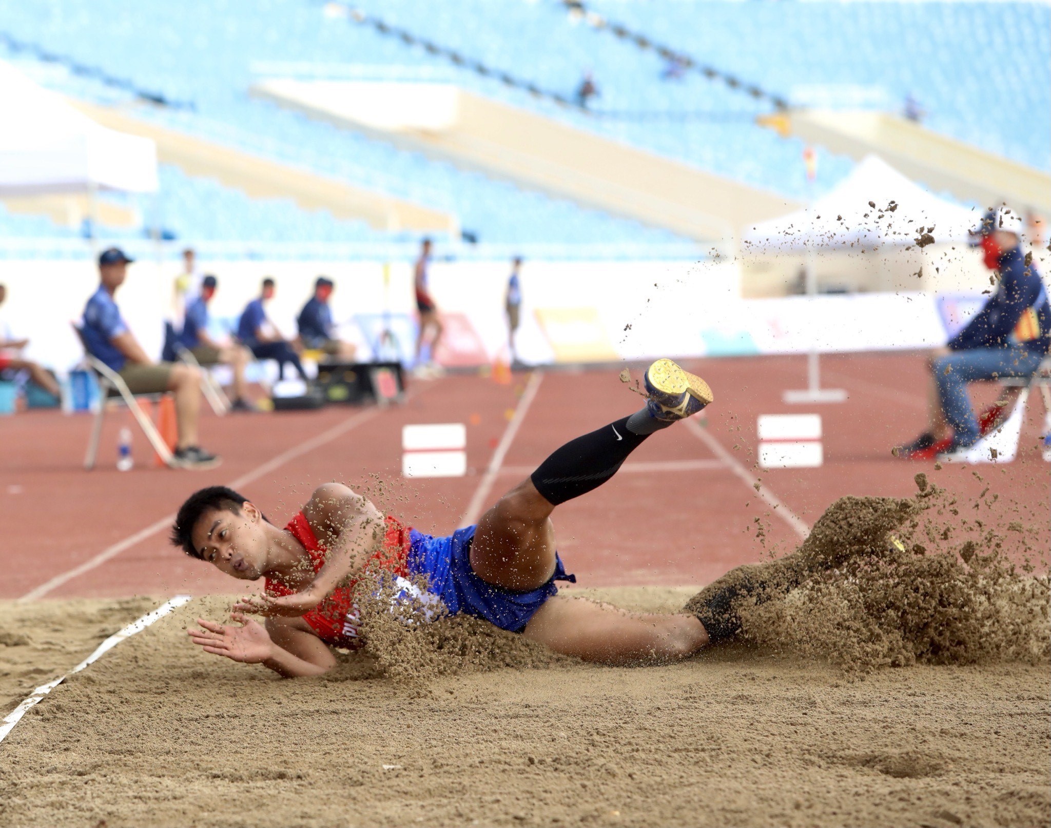 Athletics competitions continued on May 17 at My Dinh National Stadium in Hanoi. Vietnam athletics continued the winning streak when sprinter Quach Thi Lan set a record of 56:32 in the women's 400m hurdles at SEA Games 31. In the women's heptathlon, Athlete Nguyen Linh Na earned another gold with a score of 5,415 points, breaking the national record (old record was 5,350 points). Runner Nguyen Van Lai was the focus of attention on the fourth day of athletics competitions at SEA Games 31 after winning the men's 10,000m - his second gold medal at this Games. He was the first to cross the finishing line in a time of 32:17:34. With Lai’s triumph, the Vietnamese athletics team won 16 gold medals at SEA Games 31, almost reaching the target of 15-17 gold medals set before the Games. VNA Photo