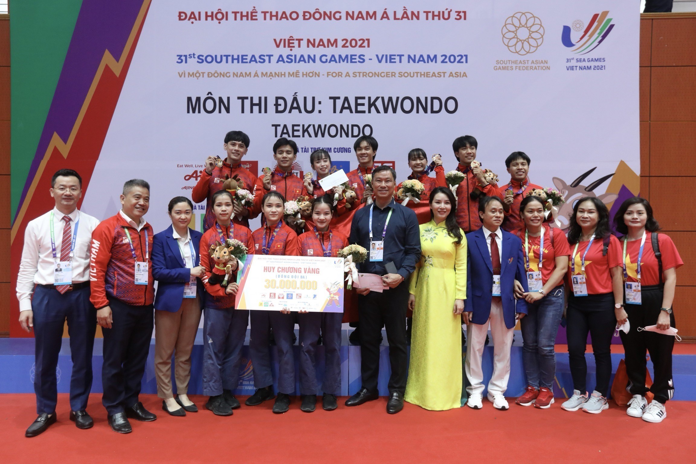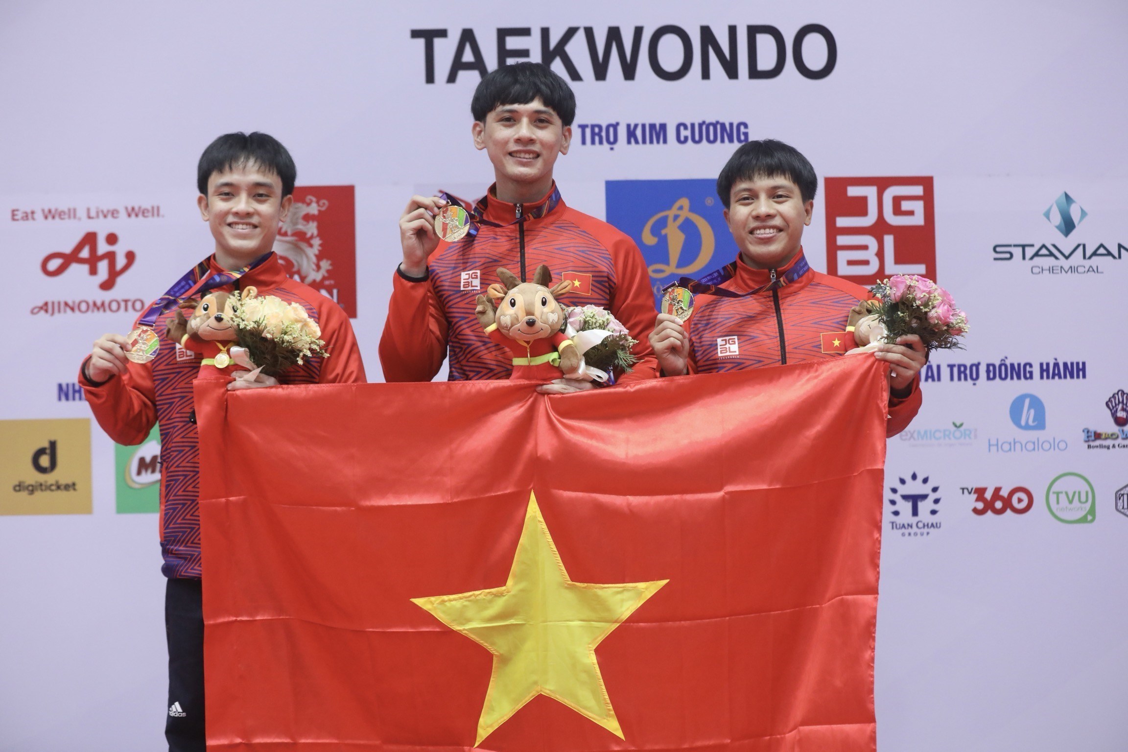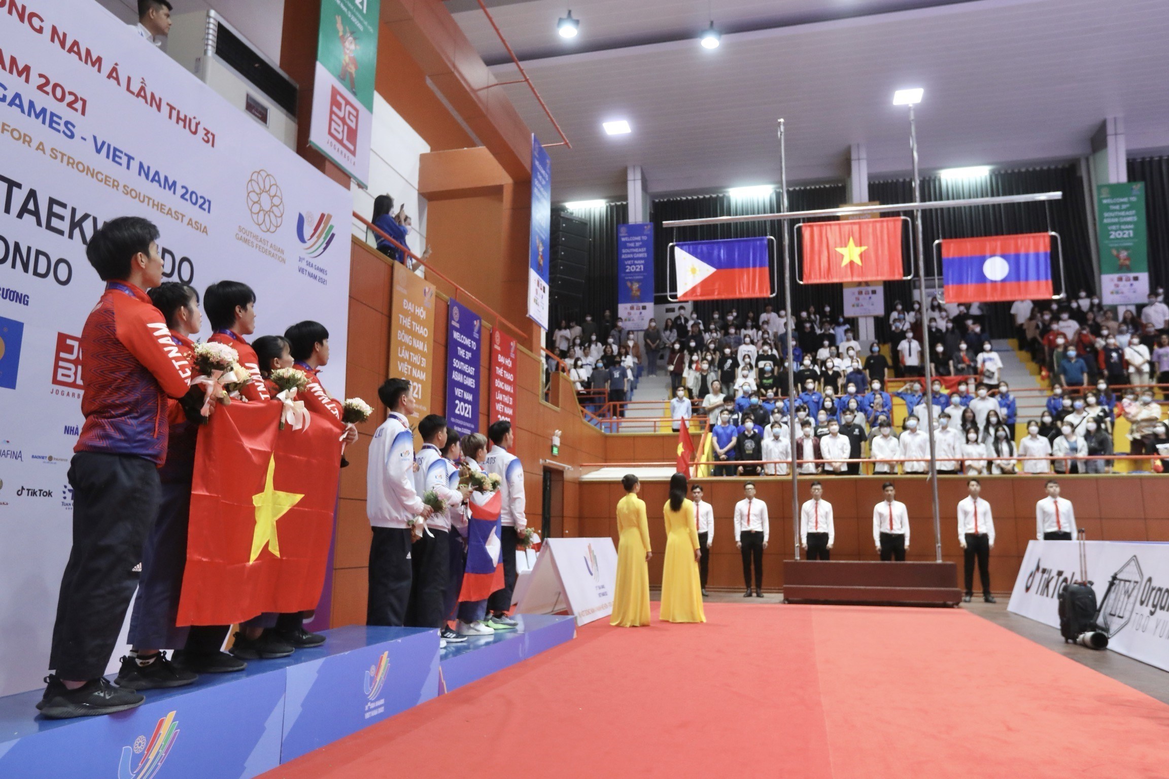 The Vietnam team opened the first day of competitions in Taekwondo on May 16 with impressive results. After competing in 5 different events, the Vietnam team brought home a total of 4 golds on the first day. First gold was won in the Freestyle Poomsae event, mixed team category, followed by men’s team Standard Poomsae event. The third gold was won in the Standard Poomsae event, women’s team category, while the fourth gold was bagged by athlete Pham Quoc Viet in Standard Poomsae men’s individual category. Athlete Kim Uyen also brought home a silver medal in Standard Poomsae women’s individual category. VNA Photo