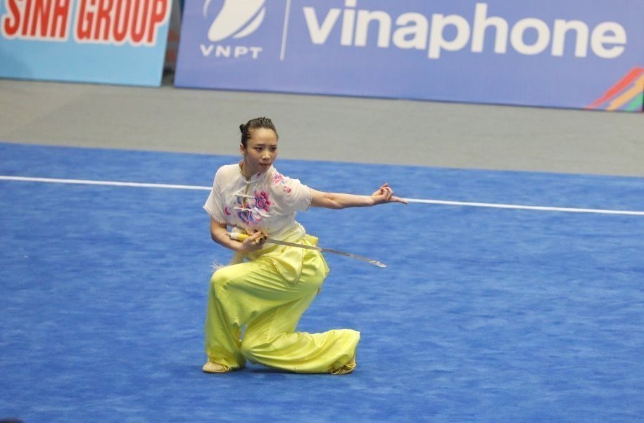 Vietnamese martial artists pocketed two gold medals in Taolu on May 13 morning, the first day of competition of Wushu at the ongoing SEA Games 31. Duong Thuy Vi earned a gold medal in the women’s Jianshu while Pham Quoc Khanh obtained a gold medal in the men’s Nandao. VNA Photo: Phạm Hậu