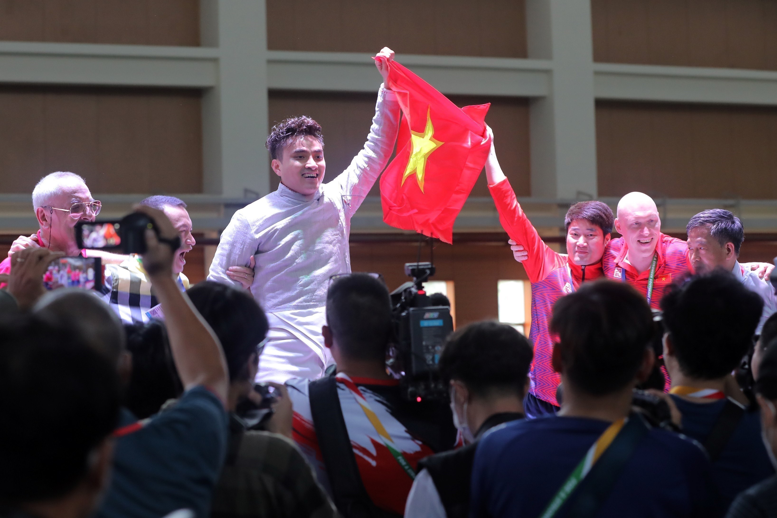 Vietnamese fencer Vu Thanh An won gold at the ongoing 31st Southeast Asian Games (SEA Games 31) after defeating his Thai opponent in the final of the men's sabre individual event on May 13. After going cruising through the group and knockout stages, An defeated Ruangrit Haekerd 15-11 to qualify for the final. His opponent Srinualnad Voragun was overwhelmed with a score of 15-7, with An successfully defending his SEA Games title. VNA Photo